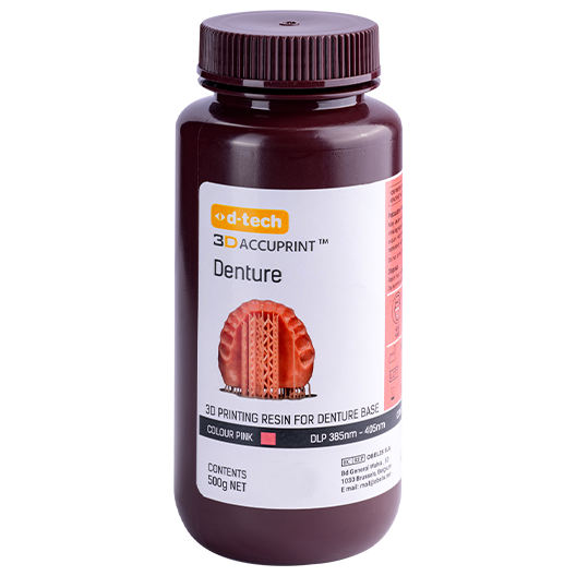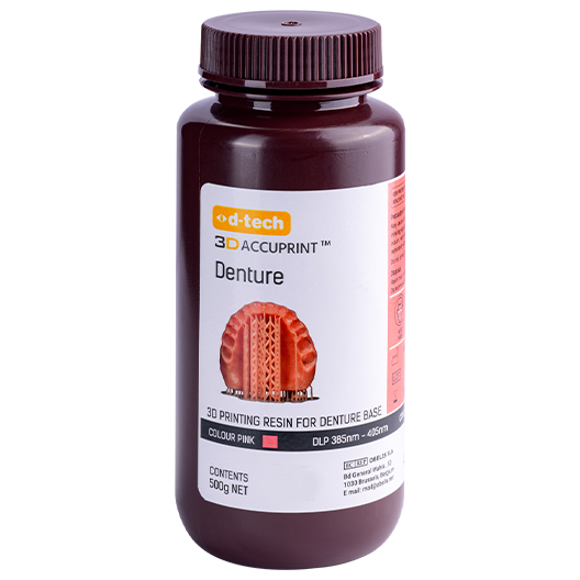 D-Tech 3D Accuprint™ Denture Resin Durable, high precision 3D printing resin for natural looking denture bases (500g, Pink).
